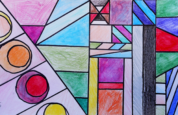 grade 4th shapes shape paintings painting geometric adventures teacher paint colors together paper pastels secondary analogous
