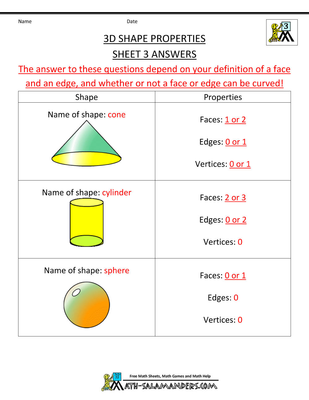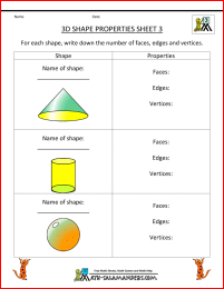 3d grade math worksheets shapes properties shape geometry faces edges vertices third practice salamanders 3rd printable worksheet kindergarten graders 2d
