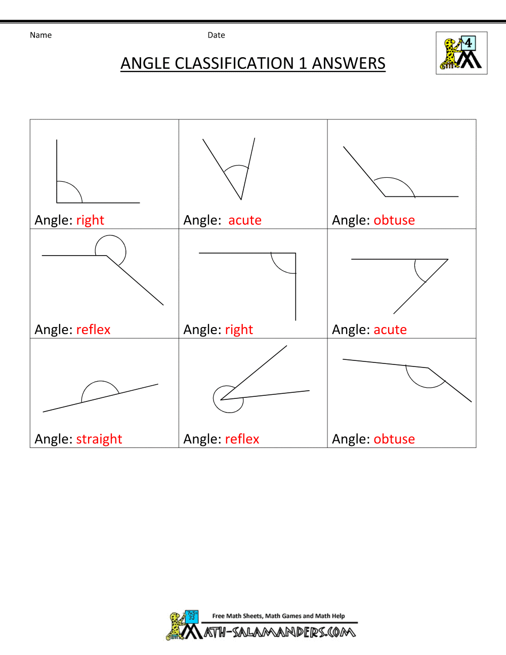 grade 4th geometry math angle classification angles worksheets salamanders shapes answers pixels 1ans sheet numbers quotes 1000 chart 2d line