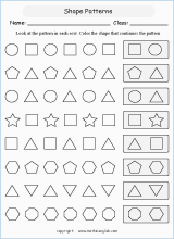 grade worksheets patterns pattern math kindergarten 1st geometric second worksheet patterning shapes activities 4th number assessment continue maths skills recognizing